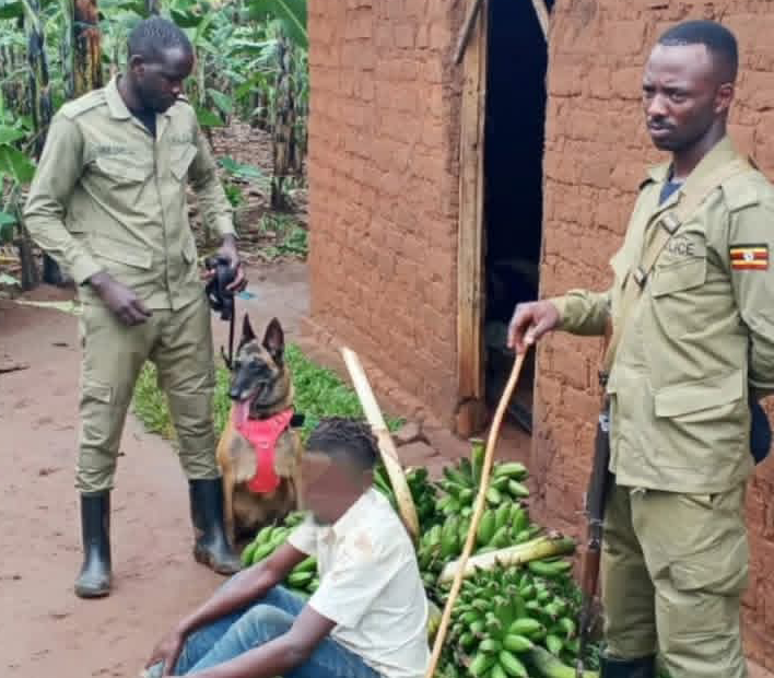 According to police, the farm owner discovered the theft after visiting her garden and finding that several bunches of matooke had been cut and removed by unknown individuals. She reported the incident to officers and requested assistance, including the deployment of a police sniffer dog.